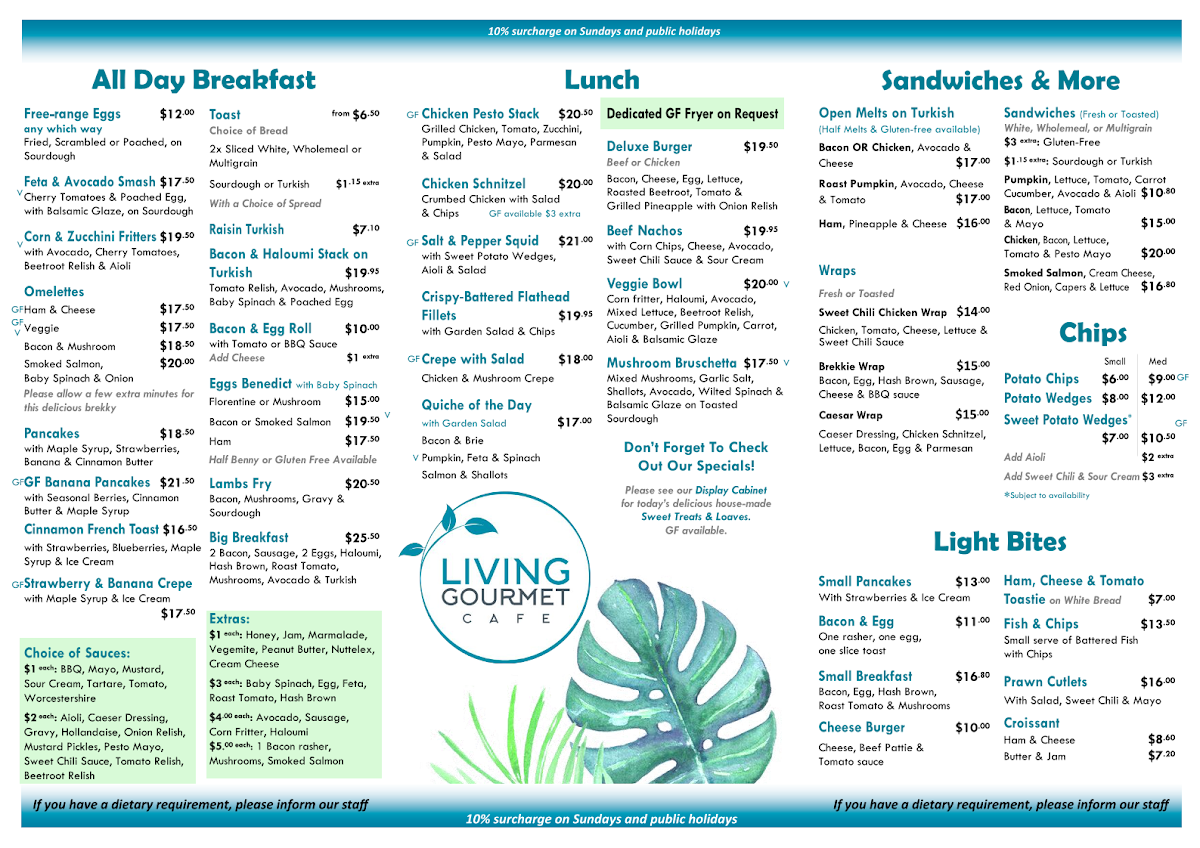 Living Gourmet Cafe (aka The Savory Cafe) Menu